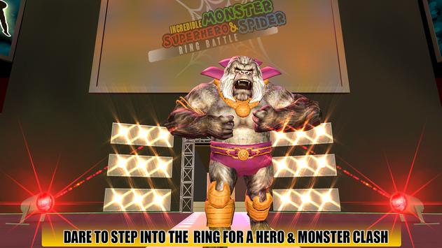 Get Ready to watch this future battle among incredible monster hero vs robots fight vs spider hero where many super heroes are going to beat each other. The incredible super heroes are all ready for final future battle in ring wrestling fighting battlefield as real super fighter. This spectacular incredible monster fun is a fine starter to real boxing games. Witness real time kick boxing simulator with unbelievable punching techniques and powerful kicks in this best of monster battle games. Get ready to watch these crazy street fighting maniacs who would now be seen in action inside the battle ring, these battle heroes will fight each other in the finest ring fight game. Select your favorite incredible monster hero character and take control of them in the battle ring of Monster Hero VS Flying Spider Ring Battle adventure.