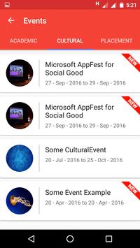 Basic 3 features of this app are NEWS,NOTIFICATION & EVENTS. All the recent news related to our college surroundings will be updated regularly in the NEWS tab. All the important schedules , exams etc will be notified to the app users in NOTIFICATION tab so that students need not to wander around and take stress. Third important tab is the EVENT tab , all the activities whether it is fest or anything information will be updates and notified to the app users via this tab.