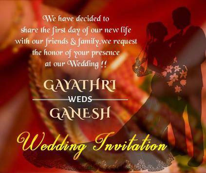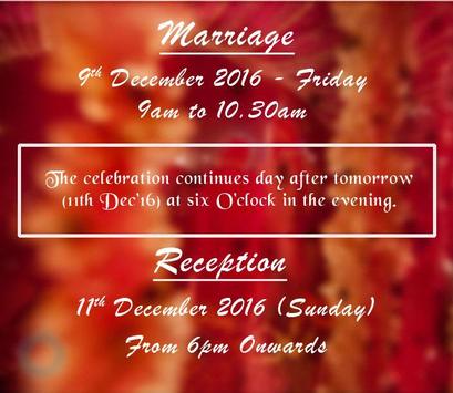 This app inviting to all for Ganesh and Gayathri Marriage function on December 9th 2016.