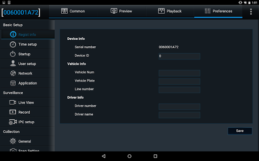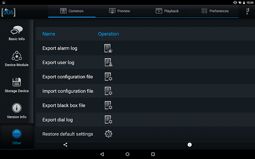 Wirelessly change configurations; Playback video recorded on the DVR and then Export that video for use on other systems; Download System Logs for viewing of specific data; Preview LIVE streams of available camera channels directly on the Tablet device; Format the DVR’s storage system; Allow specific Users access to the system.