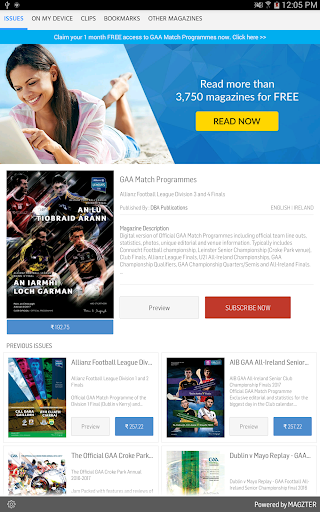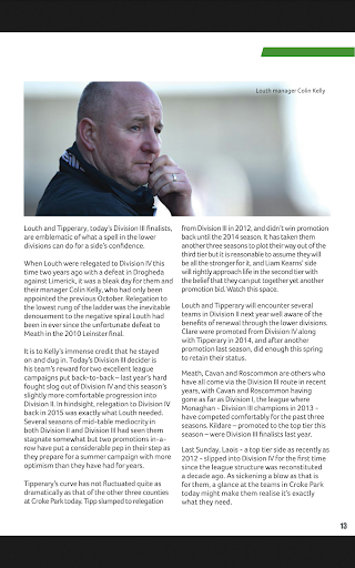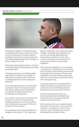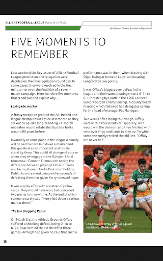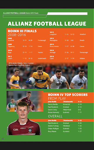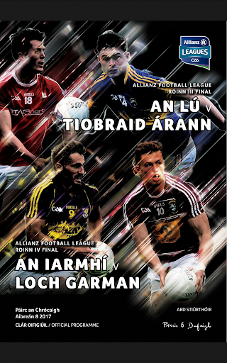 Digital version of Official GAA Match Programmes including official team line outs, statistics, photos, unique editorial and venue information. Typically includes Connacht Football championship, Leinster Senior Championship (Croke Park venue), Club Finals, Allianz League Finals, U21 All-Ireland Championships, GAA Championship Qualifiers, GAA Championship Quarters/Semis and All-Ireland Finals.