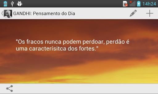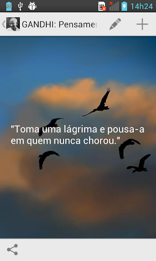 Thoughts, quotes and phrases in Portuguese for reflection authored by Mahatma Gandhi.