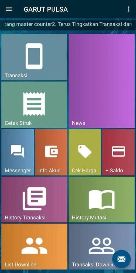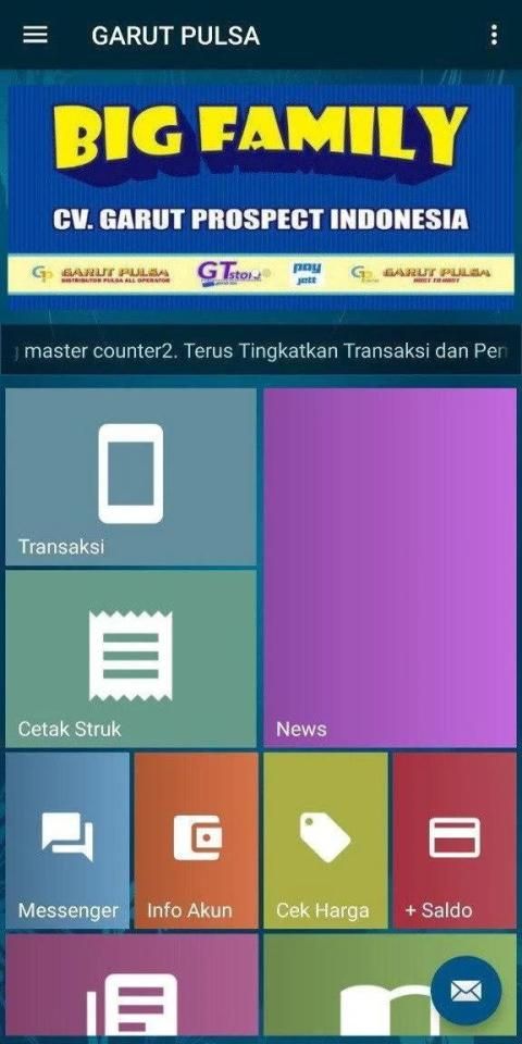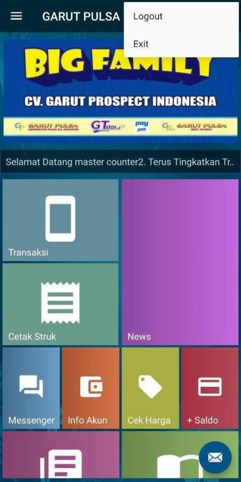 Aplikasi android GARUT PULSA adalah aplikasi mobile gratis untuk member-member setia GARUT PULSA di mana pun berada. Aplikasi ini memudahkan Anda dalam melakukan berbagai transaksi seperti pengisian pulsa, pembelian token listrik, pembayaran tagihan pasca bayar, pembelian voucher game, dll.