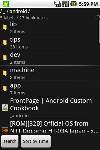 Search bookmark from title,label,URL and note.