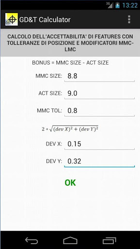 This free app allow you to establish the acceptability of holes and slots on which are applied geometric tolerances with maximum or minimum material modifier (MMC - LMC).