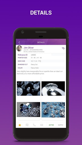 Global Diamond and Colorstone Application (GDCA) is developed for the business community to post their demands and supply orders. Users can place their requirements that can be viewed by all patrons of the application. A controlled governance process is enforced for user access approval. Application features a one-on-one chat functionality enabling users to have direct conversational chat with their trading counterparts.