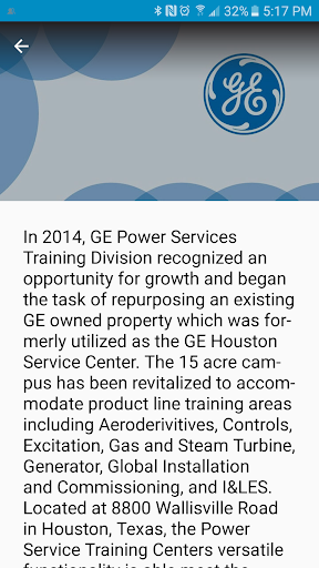 In 2014, GE Power Services Training Division recognized an opportunity for growth and began the task of repurposing an existing GE owned property which was formerly utilized as the GE Houston Service Center. The 15 acre campus has been revitalized to accommodate product line training areas including Aeroderivitives, Controls, Excitation, Gas and Steam Turbine, Generator, Global Installation and Commissioning, and I&LES. Located at 8800 Wallisville Road in Houston, Texas, the Power Service Training Centerâs versatile functionality is able meet the needs of both customer and internal training requests for a variety of students ranging from entry to advanced level experience.