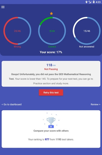 * Clear statistics such as your previous correct and wrong answers, or skipped questions in GED tests