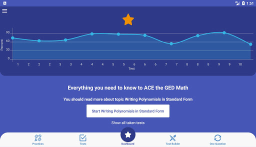 * Track your strengths and weaknesses in GED math with our analytics and statistics