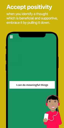 The basic task in the app is simple - you will be presented with thoughts. If the thought promotes negative self talk - throw it away by dragging it on-screen. If the thought promotes positive or neutral thinking, accept it by dragging it towards you.
