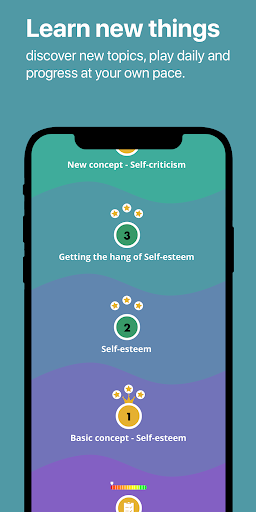 The app's many topics and themes are broken down into more than 40 levels. Each level has a pool of self talk statements (or thoughts).