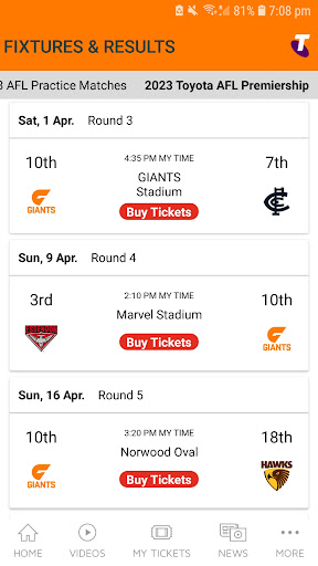 The GIANTS Official App is your one stop shop for all your latest team News, Videos, Player Profiles, Scores and Stats delivered LIVE to your smartphone or tablet!