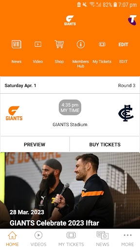 - My Club section with access to exclusive features for club members and My GIANTS Account holders