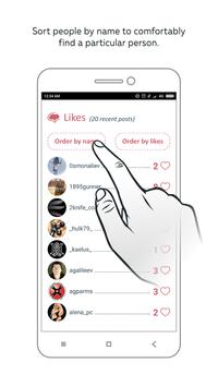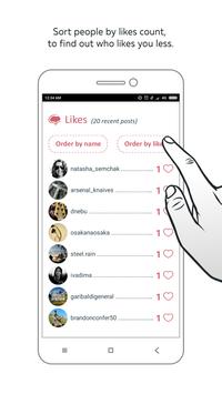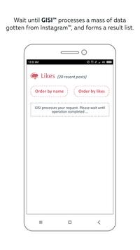 After you install GISI™ from Google Play™, just enter into your Instagram account within GISI™. Then press button "Get Statistics". GISI™ will find your recent twenty posts and all people who liked it. Now you can play with result list, sorting it by count of likes or liker's name. Since you can see people who like your posts most, you should pay them extra attention by commenting their newly appearing materials, to make them more loyal to you in the future. Concentrate on personalities who pay you back and find a new more similar. GISI™ is your essential tool for that.