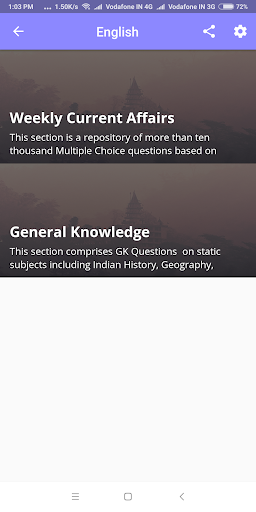 GK Quiz app has been developed keeping in mind the requirements of students of schools, colleges and the aspirants of various competitive exams organized by SSC, Banks, RBI, Railway, LIC, GIC, B.Ed, JBT/NTT, Army etc., and all other entrance and recruitment exams organized by various educational institutions and other establishments.