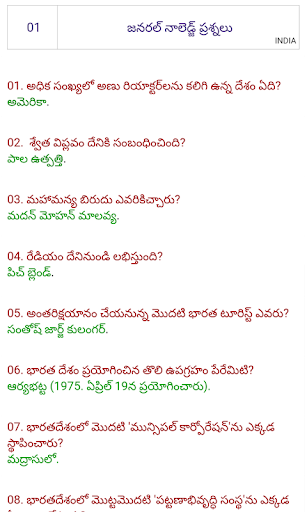 • Learn General Knowledge questions in Telugu for competitive exams.