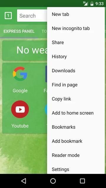 - Mendukung Homepage, Bookmarks, History, Jejak Kecil dan modus layar penuh.