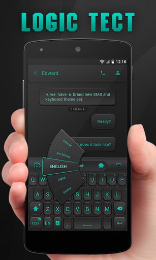 Description of 3D Black and Blue GO Keyboard Theme Logic Tect
