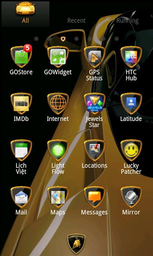 Following is the introduction of a wonderful App. 10,000+ users downloaded GO Launcher EX Lamborghini Theme latest version on 9Apps for free every week! It is simply to learn how to use it. This hot app was released on 2013-04-19. Download and play this free app for android mobile phone now!