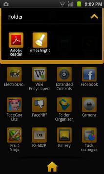 A black / gold theme for GO Launcher EX, includes many custom icons and 2 HD wallpapers. App 2 SD supported.