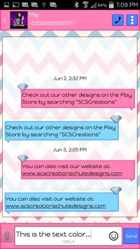 -Custom Font Colors (if you do not like the font color that the themes comes with, you can customize the theme font and font colors in the settings menu under the "advanced" tab in Go SMS Pro. This can be done with ANY Go SMS Pro theme).