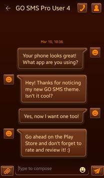 If the theme doesn't apply correctly, revert to the default theme and then select GO SMS Pro Chocolate. If you have any issues, please email us at bestthemes11@gmail. com. We want your help so we can make better themes, but we need your opinion. Please rate and/or send us your thoughts in the comment section.