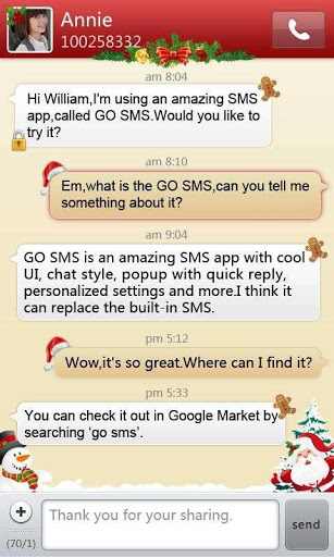 The 2010 Christmas has passed,and in order to reduce the size of GO SMS,we extract the Chrismas theme as independent APK.Hope you enjoy it.