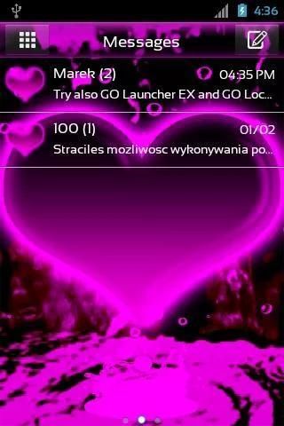 Completely new, mauve and rose-colored frames messages and a great neon pink icons, will make you lose track of time. Are You crazy and love to party? Show the world that you are an interesting person with our full HD Go SMS Theme Love.