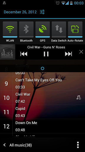 — when play music, notification bar shows music player widget that