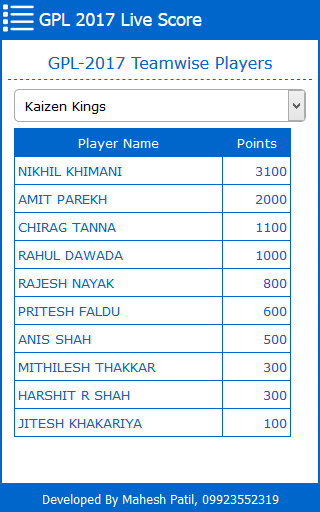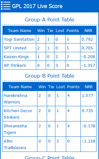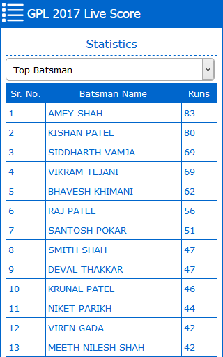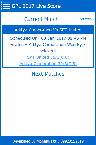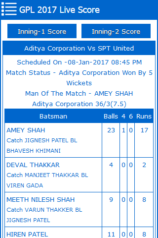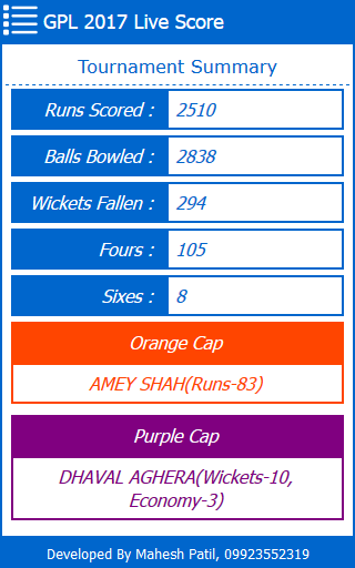 This App Is Developed For Gujrati Premier League, Sangli To Provide Live Cricket Score For There Local Cricket Tournament. This App Provides Live Cricket Scores, Matches Schedule, Old Match Results, Various Statastics, etc.