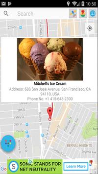 • Check for nearby places (ATMs, Gas, Coffee shops…etc) around your area. Also shows details of those places and route to navigate there.