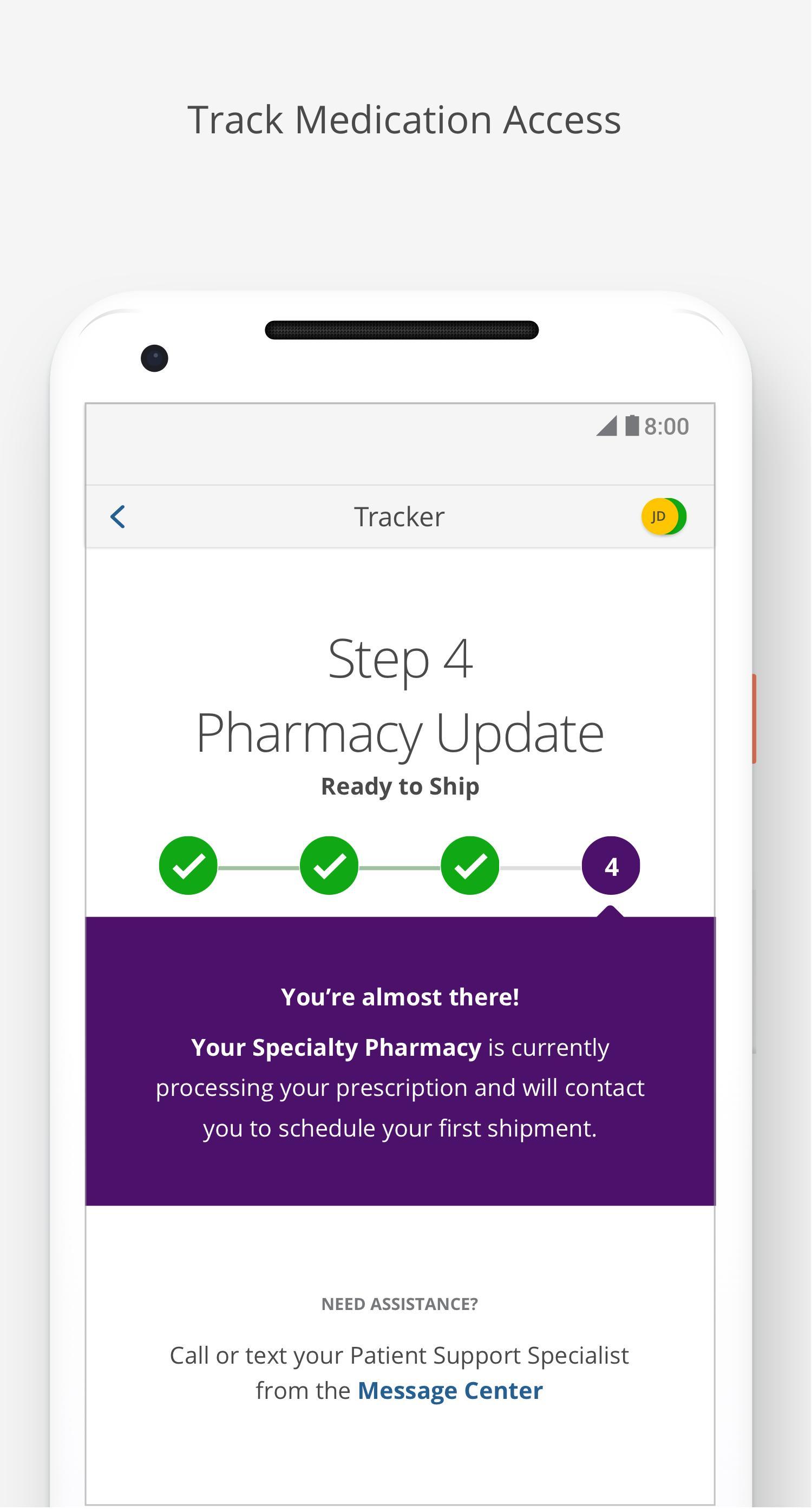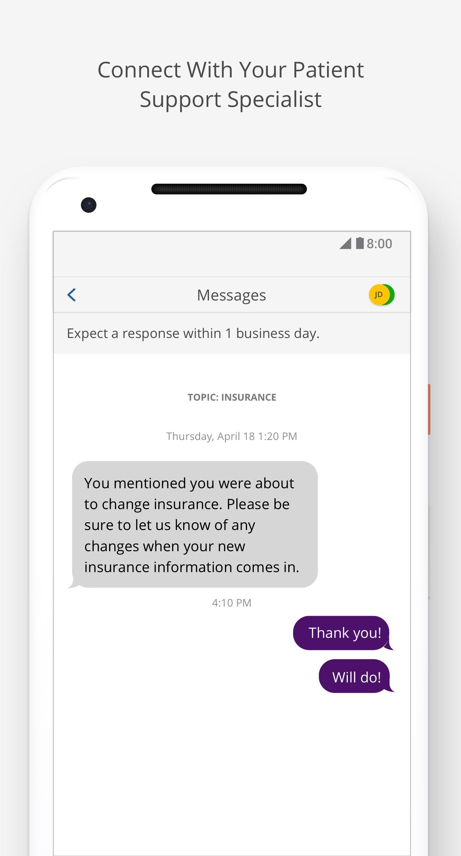 • Convenient, in-app messaging with a Vertex GPS Patient Support Specialist