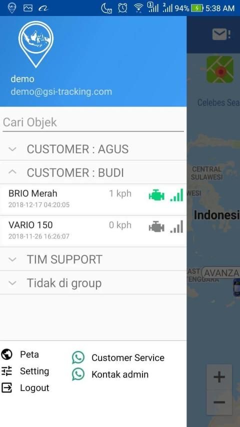Aplikasi GPS Server Indonesia digunakan untuk tracking kendaraan yang sudah dipasang GPS Tracker dan sudah terregister di server gsi-tracking.com