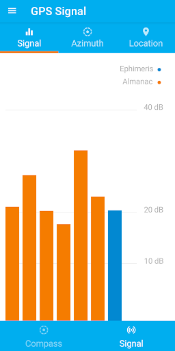 • Satellite stats - Accuracy, Signal, Almanac, Ephemeris, Azimuth, GPS Time
