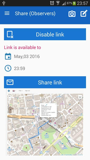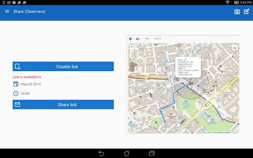 Create and share links of your current location and footprints of moving in real time. The link is available from any browser.
