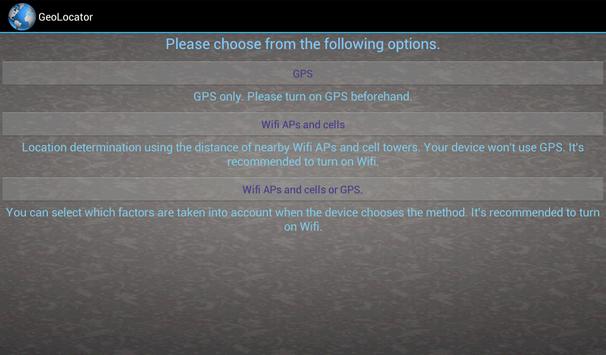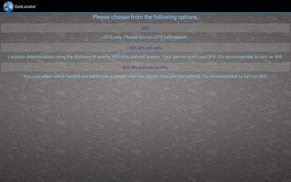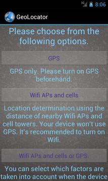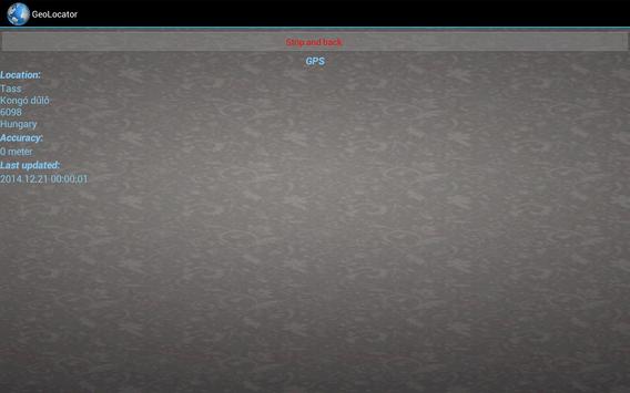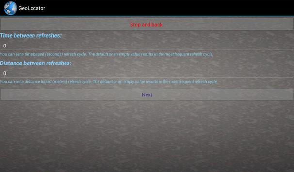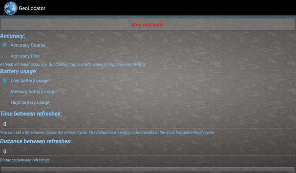 One of its main advantages is the ability to determine the user's position without GPS access. In this case the location is determined via the nearby WiFi APs (routers, etc.) and cell towers. There are three ways to do this: using GPS, using the nearby APs and towers or letting the device decide the best method depending on preset factors. Time or location based refresh frequency can be set. If the WiFi based option is chosen, the position is updated every 20-25 seconds. The lowest GPS frequency setting should be around one minute. This is a limitation of the hardware, sadly nothing can be done about it. Both methods have advantages and drawbacks as well. GPS is accurate but it usually does not work indoors. WiFi on the other hand refreshes around 20-30 secs, does not drain the battery as much, but it's much less accurate. With no internet connection only longitude and latitude data will be shown, along with the update rate. With internet access the app will show the exact address.