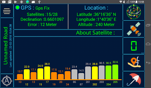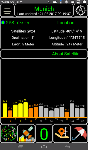 2- Graphic columns which present the signal strength of satellites.