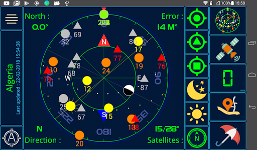 1- Know the location of satellites in space compared to your location , this location are Illustrated on a compass in different forms(gps in a circle form,glonass in the form of a triangle and other forms for the other satellites......)