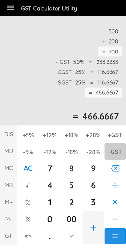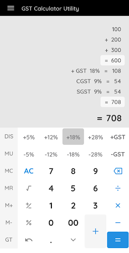 • Quickly calculate GST using predefined rates like 5%, 12%, 18% and 28%