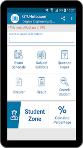 GTU Info is an app that bridges gap between Gujarat Technological University (GTU) and students. It provide detailed and comparative result analysis. You can search for student information, question paper, with its solution, etc. The app is free to download with simple and attractive UI.