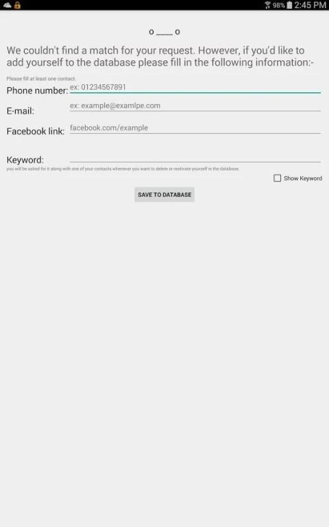 + Only the contacts you provided when you added yourself to the database and it will never show up unless your entry is a part of someone else's solution.