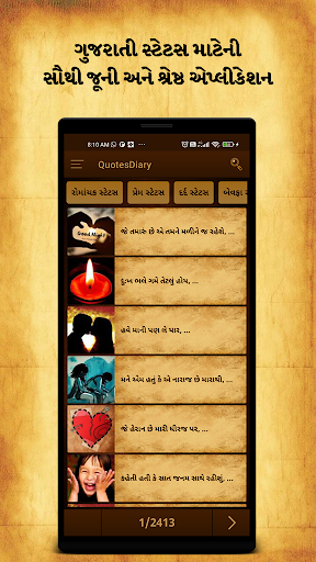 QUOTES DIARY Gujarati Status 2021 is one of the best Gujarati status and Gujarati shayari application. This application have largest collection of Gujarati Shayari, Gujarati Suvichar