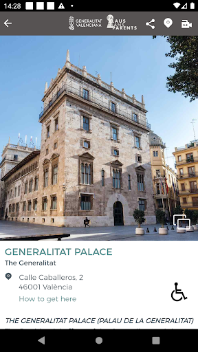 - To know public opening hours, days of visit and accessibility in the modality of independent visit (not guided). Thus, specific information of each palace and a link to the different webs of the institution or institutions that houses each building are available in the app