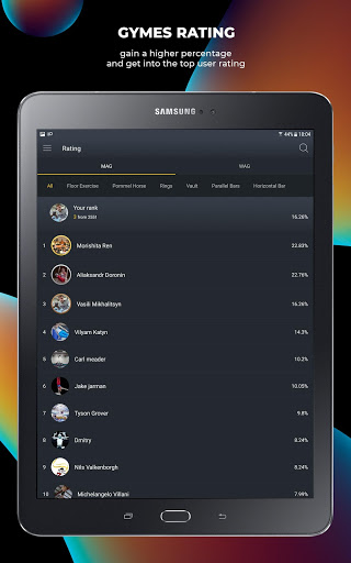 No matter who you are - a beginner, a professional athlete or a coach, you can use GYMES on equal terms. This application will be interesting even for lovers of gymnastics. We suggest you use GYMES for free, so join the great friendly community and develop your skills in gymnastics every day.