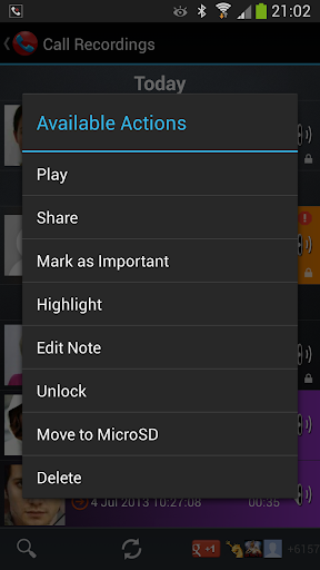 The program gives options to delete records automatically when they becoming old or when a record length is not long enough to be saved. Additionally it is possible to disable recording when headphones or Bluetooth device is used. Also it is possible to disable recording for incoming or outgoing calls.