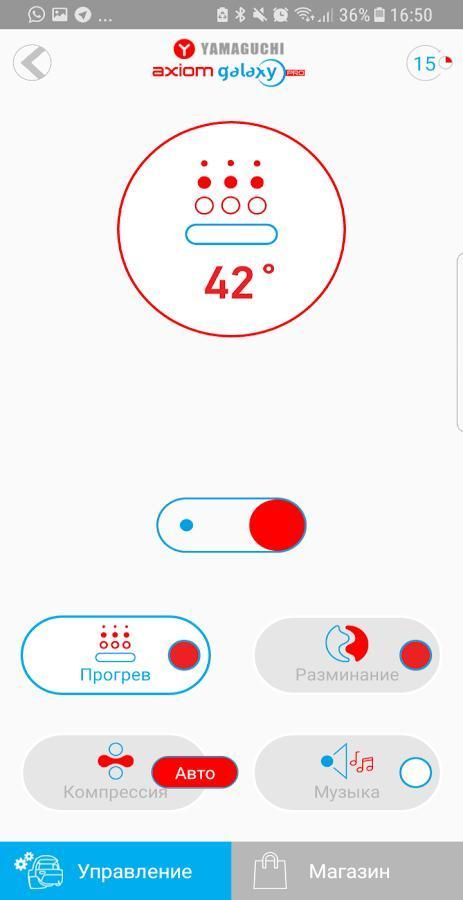 Galaxy PRO application is designed specifically to make the management of the same name massage helmet YAMAGUCHI Galaxy PRO the most convenient and simple. After successful synchronization with an application to easily manage all functions of the helmet, be it temperature, compression, massage the top of the head or music - all this you can adjust the touch of a button. Also in the application is the "Shop" section, where you can get acquainted with all the products of the company YAMAGUCHI.
