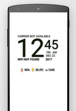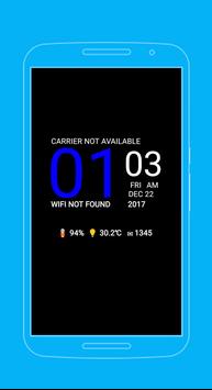 Can display Time, Seconds, Date, your WiFi SSID (if connected), GSM network operator and Battery level, status or temperature.