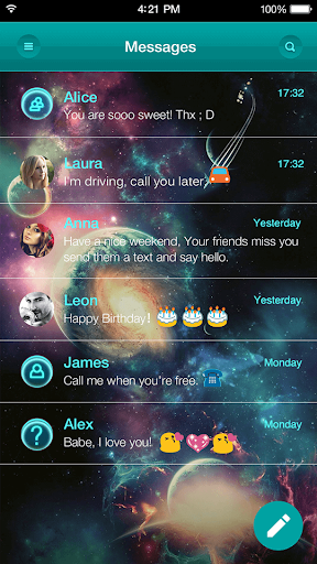 Galaxy War Messages Theme gives your Messages a colorful and stylish look.
