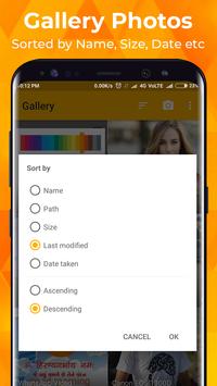 by Name, Sorting by Date, Size wise Sorting photo grid.