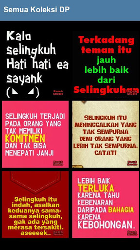 Dapatkan dengan percuma hanya dengan mendownload aplikasi Gambar DP Kata Selingkuh saat ini juga dan warnai harimu dengan koleksi gambar yang keren